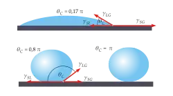 Powyższa zależność wynika z równowagi rzutów sił (przedstawionych na rysunku) na kierunek poziomy i zwana jest równaniem Younga: