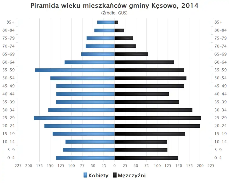 - Piramida wieku mieszkańców gminy Kęsowo w 2014 roku[1].
