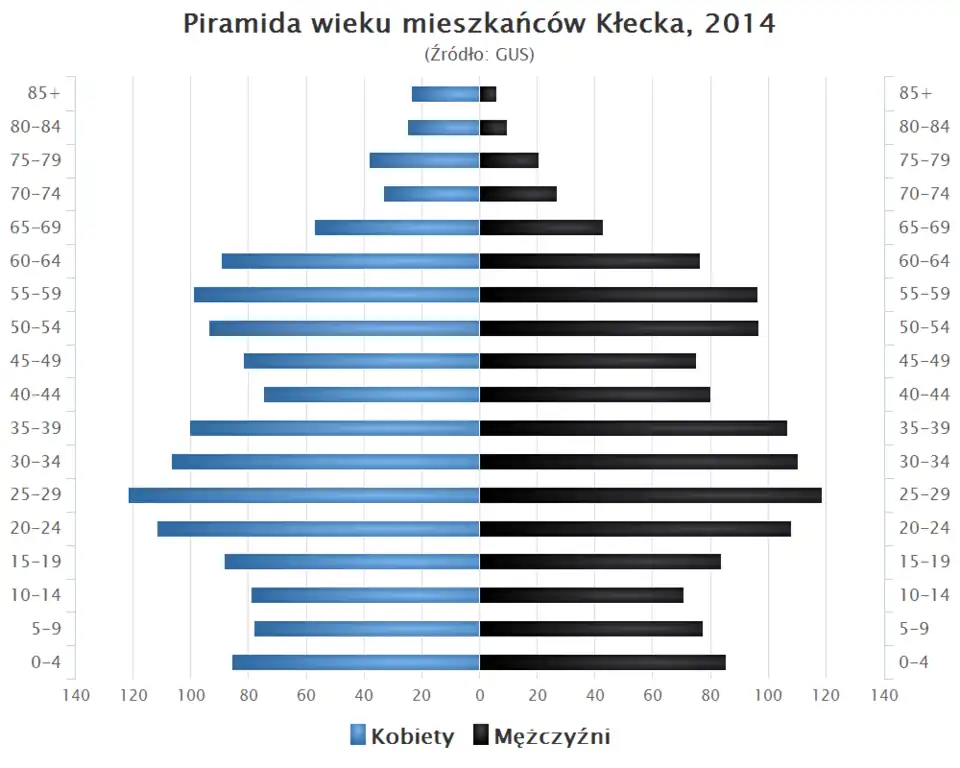 - Piramida wieku mieszkańców Kłecka w 2014 roku[1].