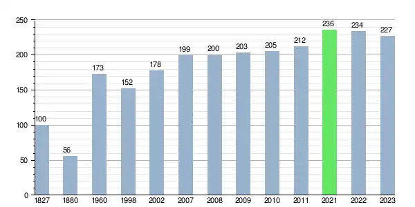 W 1827 roku na terenie miejscowości znajdowało się 19 domów, ponad 50 lat później w 1880 roku było to już tylko 9 domów (4 należące do folwarku)[14]. W czasach współczesnych, w 2002 roku na terenie wsi znajdowało się 47 domów[15].