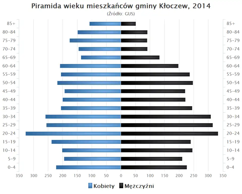 - Piramida wieku mieszkańców gminy Kłoczew w 2014 roku[1].