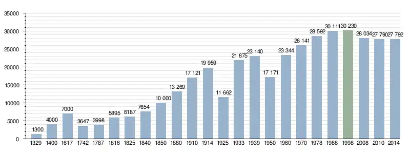 Według danych GUS z 1 stycznia 2023 r. miasto miało 25 113 mieszkańców[4] (173. miejsce w kraju). Gęstość zaludnienia wynosiła 1011 osób/km² (21. miejsce w województwie).