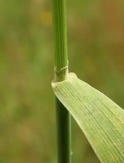 - Pochwy liściowe otwarte i nagie lub bardzo słabo owłosione. W górnej części łodygi pochwy lekko rozdęte a blaszki liściowe krótkie. Liście w pączku zwinięte, osiągają 3-12 mm szerokości i zwykle do 8 cm długości (na pędach wegetatywnych do 20 cm). Są nagie lub słabo owłosione. Tępo zakończony języczek u podstawy blaszki.