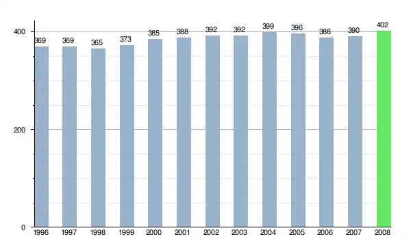 Według danych z dnia 31 grudnia 2012, wieś zamieszkiwało 435 osób, w tym 215 kobiet i 220 mężczyzn[6].