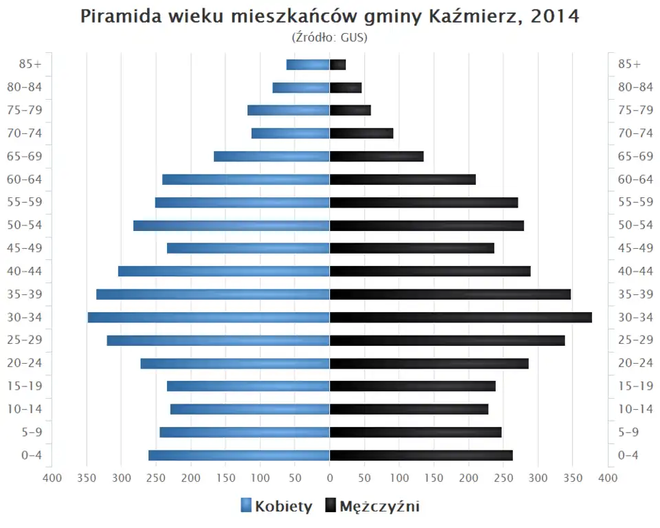 • Piramida wieku mieszkańców gminy Kaźmierz w 2014 roku[1].