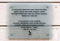 ![]() Budynek przy ul. Nowy Świat 63, w którym odbywały się przedstawienia kabaretu | |