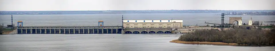 Zapora ma 30 metrów wysokości i 3273 metrów długości[2]. Jej szczytem poprowadzona jest przeprawa, po której przebiega linia kolejowa i droga M14/P47[2]. W 2021 elektrownia posiadała moc 351 MW[2]. Jest najmniejszą, szóstą i ostatnią elektrownią w kaskadzie elektrowni wodnych na Dnieprze[3].