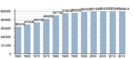 Zmiany w populacji Kagoshimy w latach 1960–2015: