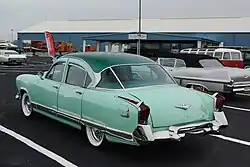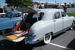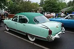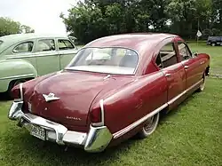 - ↑ Z samochodów 1951 rocznika średniego i wyższego segmentu cenowego wystające błotniki tylne nadal stosowały: Chrysler, Dodge, DeSoto, Oldsmobile, Studebaker, a także Packard (po „gładkich” modelach ubiegłorocznych), a całkiem gładkie boki miały: Mercury, Nash, Hudson i Frazer (Flory 2008 ↓, s. 319-388).