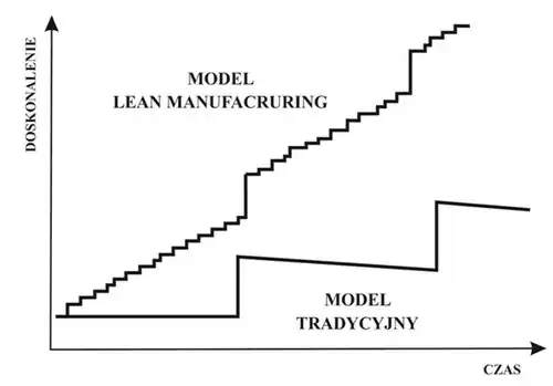 W modelu tradycyjnym proces doskonalenia składa się z długiej fazy przygotowawczej. Po wprowadzonym doskonaleniu pracuje się na opracowanym standardzie przez dłuższy czas nie usprawniając go.