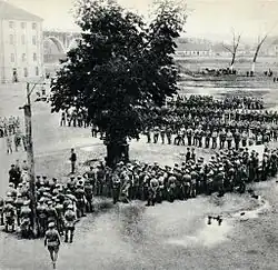- W związku z sytuacją międzynarodową komendant Józef Piłsudski wydał pierwsze rozkazy przygotowawcze do mobilizacji strzelców. Miejscem organizacji pierwszych oddziałów (kompanii kadrowych) uczyniono Kraków. Komendantem placu w tym mieście został mianowany Mieczysław Norwid-Neugebauer[2][3].