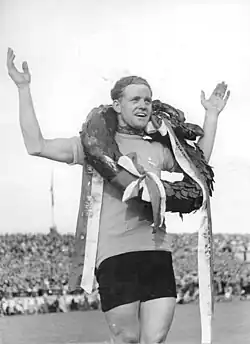 - (S) po raz czwarty Łódź była (27 września) miastem etapowym 6. Wyścigu Kolarskiego dookoła Polski (obecnie Tour de Pologne); meta III etapu Częstochowa – Łódź (142 km) znajdowała się po raz trzeci na torze kolarskim w parku Helenów[h]; zwyciężył Roman Siemiński (Elektryczność Warszawa, 3:41:02); najlepszy z łodzian – Lucjan Pietraszewski (Towarzystwo Zwolenników Sportu Łódź) – był na mecie 2. (3:55:10) i otrzymał srebrną wazę z kryształem ufundowaną przez „Dziennik Łódzki”, puchar srebrny od firmy B. Kantor oraz kupon materiału na ubranie ze stuprocentowej wełny od Wydziału Spożywczego „Społem”[17]; 28 września kolarze wyruszyli z Łodzi do Warszawy;