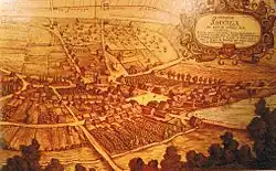 - (U) zawarcie przez władze miejskie umowy z prywatnym przedsiębiorcą Maciejem Doczekałowiczem (nazywanym później Ratusznym) w sprawie budowy drewnianego ratusza; w budynku postawionym na placu miejskim przy rynku znalazła się karczma, a tylko pewną jego część przeznaczono na siedzibę władz miejskich; najprawdopodobniej dotrwał do połowy XVIII w. (ostatnia wzmianka w 1727 r.)[47][48];