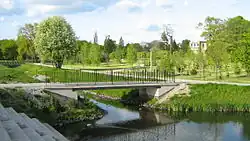- (G) najwcześniejsza wzmianka o młynie plebańskim postawionym na rzece Jasień, zwanym później Księżym Młynem[27]; wodę na potrzeby młyna zatrzymano groblą i spiętrzono tworząc staw młyński; po grobli biegła droga, która czterysta lat później stała się ulicą Przędzalnianą[28];