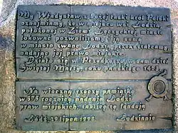 - ↑ Oryginalny dokument nadający prawa miejskie Łodzi przez króla Władysława Jagiełłę nie zachował się do naszych czasów. Jego odpis znajduje się w Kopiarzu spisanym w 1517 r. na polecenie biskupa włocławskiego Macieja Drzewickiego, zawierającym najważniejsze dokumenty z początków historii Łodzi. Zabytkowy kodeks jest własnością Zakładu Narodowego im. Ossolińskich we Wrocławiu (Janecki 2008 ↓).