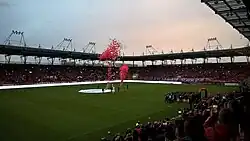 - ↑ Dariusz Kuczmera: Otwarcie stadionu żużlowego w Łodzi. Wielu widzów, hymn, łzy i oberwanie chmury [ZDJĘCIA]. [w:] Portal „Dziennika Łódzkiego”. dzienniklodzki.pl > Sport > Żużel > Orzeł Łódź [on-line]. Polska Press Sp. z o.o., 2018-07-29. [dostęp 2018-10-17].