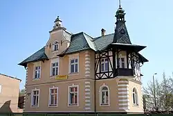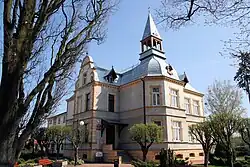 - 1842 – przebudowa gmachu byłej wytwórni sukna Christiana Beiera przy Seestraße (ul. Jeziorna), w której umieszczono 4-klasową szkołę podstawową