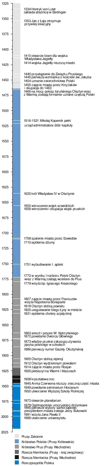 Od uzyskania praw miejskich Olsztyn (wraz z całą Warmią) znajdował się pod panowaniem następujących państw: