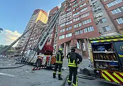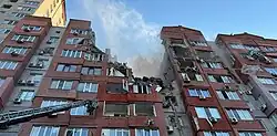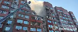 - ↑ Kateryna Denisova: Russia hits nine-story residential building in downtown Dnipro, killing at least 1, injuring 12. kyivindependent.com, 2024-06-28. [dostęp 2024-06-29]. (ang.).