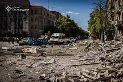 - ↑ 12 killed in Russian attacks on Ukraine. Rescue work continues at destroyed apartment building. Associated Press, 2024-06-29. [dostęp 2024-06-30]. (ang.).