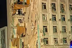 - ↑ У Дніпрі вже 9 травмованих внаслідок російського удару по багатоповерхівці, зокрема двоє дітей. interfax.com.ua, 2023-07-28. [dostęp 2023-07-29]. (ukr.).
