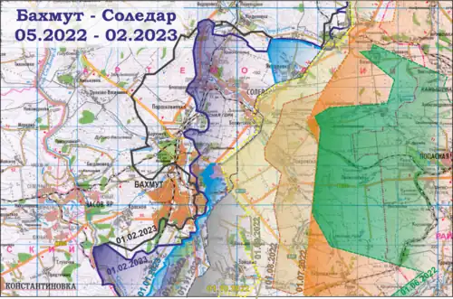 - ↑ Rosjanie utknęli w Bachmucie. „Mogli posunąć się o kilkaset metrów”. rp.pl, 2023-03-23. [dostęp 2023-03-24]. (pol.).