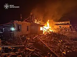 W godzinach nocnych Rosja przeprowadziła atak na Ukrainę przy użyciu dronów i rakiet. Według Sił Powietrznych Ukrainy w rejon Charkowa i Doniecka wystrzelono cztery rakiety S-300 i 39 dronów Shahed 136/131 (z Krymu i Primorsko-Achtarska). Atak dronów trwał 4,5h, podczas którego ukraińska obrona przeciwlotnicza zniszczyła 35 dronów w obwodach kirowohradzkim, mikołajowskim, dniepropetrowskim, czerkaskim, odeskim, chersońskim, chmielnickim, winnickim, kijowskim i żytomierskim[255][256][257]. W obwodzie odeskim jeden z dronów uderzył w obiekt przemysłowy; budynek został uszkodzony i doszło do pożaru, ale nie było ofiar w ludziach. Obrona przeciwlotnicza zniszczyła w tym regionie 11 dronów[258]. W obwodzie mikołajowskim dron uszkodził linię energetyczną[255][259]. Gubernator Wadim Fiłaszkin podał, że dwie osoby zginęły w uderzeniu rosyjskiego drona Shahed w dzielnicę mieszkaniową w Dobropolu[260][261]. Poinformował także, że do 12 wzrosła liczba osób rannych w rosyjskim ataku trzema rakietami S-300 na Myrnohrad, gdzie zniszczono 20 domów[262][263].