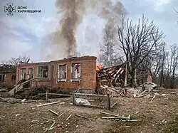 - ↑ Dinara Khalilova: Governor: Russian attack on Kharkiv Oblast village kills woman, injures her husband. kyivindependent.com, 2024-03-28. [dostęp 2024-03-29]. (ang.).
