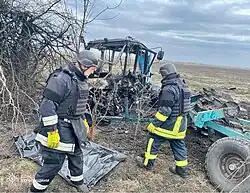 - ↑ Nate Ostiller: Russian drone attack in Kherson Oblast kills woman. kyivindependent.com, 2024-03-27. [dostęp 2024-03-28]. (ang.).