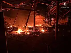 W godzinach nocnych armia rosyjska przeprowadziła kolejny zmasowany atak na Ukrainę przy użyciu dronów i rakiet. Według Sił Powietrznych Ukrainy wystrzelono 30 dronów Shahed 136/131, z czego 16 zostało zniszczonych[4][5]. Według władz lokalnych w obwodzie dniepropetrowskim drony uderzyły w infrastrukturę cywilną w Krzywym Rogu, a w obwodzie mikołajowskim trafiły w magazyn przedsiębiorstwa rolnego w Snihuriwce[6][7]. W Humaniu w obwodzie czerkaskim drony uderzyły w spichlerz z nasionami słonecznika; w sumie spłonęły ponad 3 tys. m², a jedna osoba została ranna. Zniszczono także budynki dawnego składu ropy naftowej[5][8][9]. W Charkowie atak rakietowy za pomocą pocisków S-300 spowodował pożar przedsiębiorstwa przemysłowego[10].