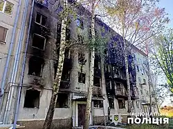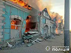 - ↑ Martin Fornusek: Russian strike on Kharkiv Oblast village injures woman. kyivindependent.com, 2023-10-27. [dostęp 2023-10-28]. (ang.).