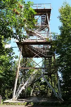 W latach 60. XX wieku na szczycie Kalenicy, obok wieży widokowej, nad naziemnym punktem geodezyjnym stała wysoka trójsłupowa drewniana wieża triangulacyjna[1].