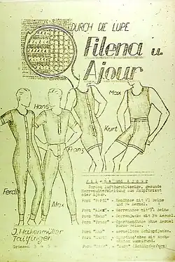 - ↑ Herrenstrümpfe. www.german-hosiery-museum.de. [dostęp 2016-03-10]. [zarchiwizowane z tego adresu (2015-07-08)].