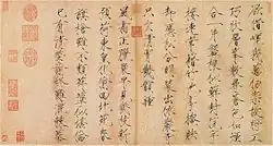 Pismo bieżące (xingshu) dominowało w sztuce songowskiej, która ceniła elegancję, swobodne wyrażanie emocji i uwolnienie się od ograniczeń. Takiemu nastawieniu w kaligrafii odpowiadały style płynniejsze, mniej regularne, nawiązujące do mistrzów ery Jin, takie jak xingshu i kursywa[18]. Wielkimi mistrzami dynastii Song byli: Su Shi, Huang Tingjian i Mi Fei[19].