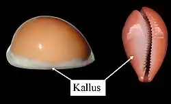 Kallus – pogrubiona warstwa induktury (cienkiej, błyszczącej warstwy wydzielanej przez płaszcz ślimaka) na powierzchni parietalnej lub obejmująca wargę zewnętrzną i podstawę. Kallus jest zwykle biały lub inaczej ubarwiony.