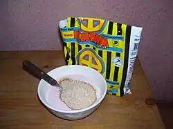 Proszek kama to mieszanka prażonej mąki jęczmiennej, żytniej, owsianej i z grochu. Mąkę owsianą można całkowicie zastąpić mąką pszenną.