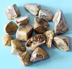 ![]() Kamienie żółciowe we wnętrzu rozciętego pęcherzyka żółciowego | |