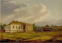 Nie później niż na początku XIX Pakoszowie wznieśli tu niewielki (dziewięcioosiowy), prawdopodobnie drewniany, parterowy dwór, na wysokiej podmurówce. Później dobudowano do niego portyk o czterech toskańskich kolumnach. Za balustradową attyką nad portykiem był płaski dach. Dom był zbudowany na planie szerokiego prostokąta, prawdopodobnie z dwoma bocznymi, pięcioosiowymi skrzydłami, był przykryty wysokim, gładkim, czterospadowym dachem pokrytym gontem. Po prawej stronie dziedzińca stały drewniane zabudowania gospodarcze. Dwór Pakoszów znany jest jedynie z obrazu Albrechta Adama z 1812 roku; nie wiadomo, jak długo istniał. Dziś po nim nie ma śladu.