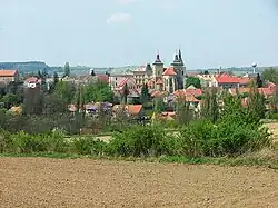 żółtym szlakiem pieszym z dworca kolejowego w Kouřimiu[4].