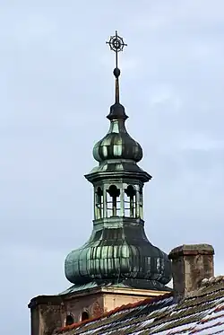 - figura św. Jana Nepomucena z roku 1801 i. Figurę w początkach XXI wieku przeniesiono kilka metrów na zachód pod mur.