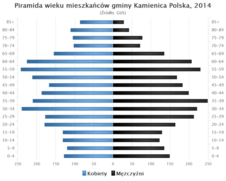 - Piramida wieku mieszkańców gminy Kamienica Polska w 2014 roku[1].