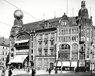 Kolejną przebudowę kamienica przeszła w 1905 roku[9] lub w latach 1907 a 1910[3]. Została wówczas rozebrana, a w jej miejsce wzniesiono trzyosiowy budynek według projektu Alvina Wedemanna, w którym mieścił się, założony w 1879 roku Breslauer Disconto-Bank[f], a następnie Bank für Handel und Industrie (Bank Handlowo-Przemysłowy)[5]. W 1927 skrzydło od strony ul. Szewskiej zostało sprzedane właścicielom domu towarowego Baraschów. Do końca 1945 roku w budynku mieścił się oddział Dresdner Banku[13].