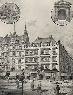 - ↑ Breslauer Disconto-Bank(Wrocławski Bank Dyskontowy) został założony w 1870 roku a swoją siedzibę miał pierwotnie w narożnej kamienicy przy ulicy Ofiar Oświęcimskich i Gepperta[12]