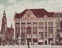 W 1904 roku kamienicę zakupiła firma Philippi & Co., specjalizująca się w sprzedaży wina. W tym samym roku kamienicę rozebrano, a w jej miejsce postawiono pięciokondygnacyjny dom handlowy o żelbetonowej konstrukcji i elewacji z elementami barokowo-secesyjnymi. Autorem projektu był Robert Hönsch. Zabytkowy portal został przeniesiony i wmurowany w elewację budynku przy ul. Biskupiej 11/ Wita Stwosza 16, również należącego do rodziny Philippich, a drewniane rzeźbione schody trafiły do zbiorów muzealnych[5]. Na pierwszych kondygnacjach domu handlowego znajdowały się sklepy, do których prowadziły oddzielne wejścia od strony pl. Solnego. Trzy z nich posiadały dodatkowo kręte schody prowadzące na I piętro. Trzecie i czwarte kondygnacje zajmowały biura, do których prowadziła osobna klatka schodowa od strony Rynku[6]. Od 1930 roku właścicielami kamienicy byli kupcy M. Rosner, B. Jacobowitz i M. Rosenbaum. Od 1939 roku Deutschen Bank[7].