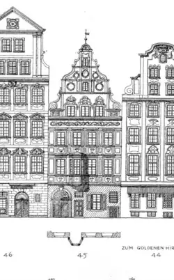 Na przełomie XVIII i XIX wieku fasada kamienicy otrzymała nową formę. Budynek został przebudowany według projektu A. Kühnela, a jego wykonawcami byli mistrz murarski Carl Meineck i cieśla Heinrich Kuveke. Fasada kamienicy w kolejnych latach (1914, 1921 i 1925) zmieniała swój wygląd, sukcesywnie pozbawiana była wystroju i dekoracji[6]. W 1919 w kamienicy na parterze i I piętrze swoją siedzibę miała firma N. Berger[7]