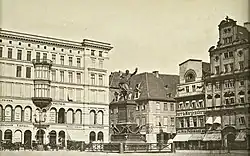 W 1900 roku budynek został przebudowany według projektu C. Gühla. Kamienicy nadano wówczas eklektyczny kształt[2]. Budynek został podniesiony do pięciu kondygnacji. Duże okna na parterze i drugiej kondygnacji spięte były dwukondygnacyjnymi arkadami o boniowanych filarach[4]. Wygląd fasady w wyższych kondygnacjach mieszkalnych nawiązywał do wyglądu historycznych kamienic mieszczańskich. Budynek pokrywał dach pulpitowy o spadku od strony ulicy i placu. Narożnik czwartej kondygnacji zdobiła wieżyczka nakryta hełmem iglicowym[4]. Na trzeciej i czwartej kondygnacji od frontu umieszczono dwukondygnacyjny wykusz[3][1].