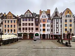 ![]() Widok placu Ratuszowego w 1973 r., kamienica po lewej | |