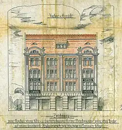 Zrealizowany projekt kamienicy. Rysunek H. Pisczka z 1906 roku