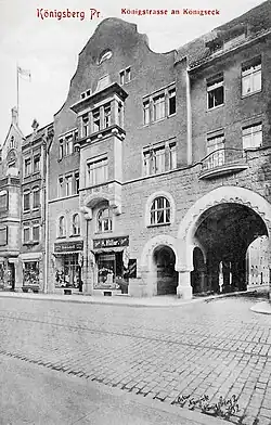 - ↑ Jekatierina Miedwiediewa, Wyrwigłaznyje fasady. W Kaliningradie riekonstruirowali istoriczeskoje zdanije «Krojc-aptieki» – połucziłos tak ekscentriczno, czto tiepierʹ postrojku obsużdajet wsia strana [online], meduza.io, 30 lipca 2020 [dostęp 2020-10-12].