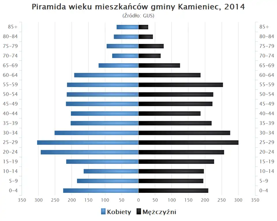 - Piramida wieku mieszkańców gminy Kamieniec w 2014 roku[1].